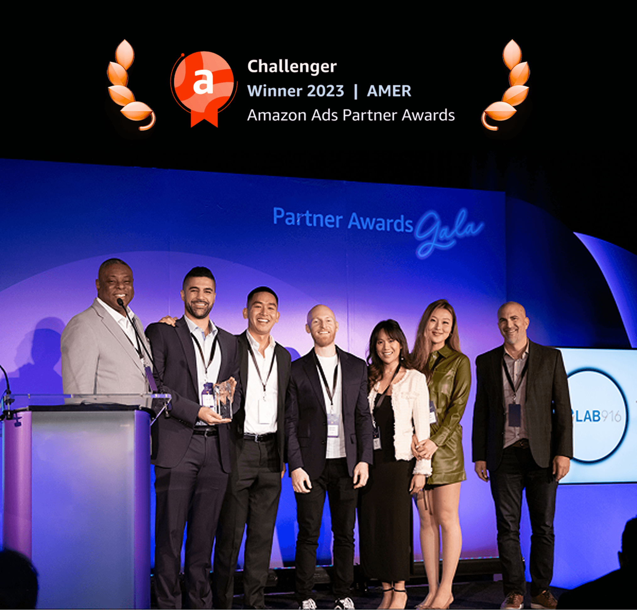 Lab 916 was recognized by Amazon with the prestigious Amazon Ads Partner Challenger Award for delivering exceptional results and innovation in Amazon advertising for our clients.